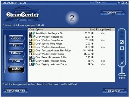 Рус. язык: Есть (Русификатор (этот файл нужно разместить в Program Files / CleanCenter / Language) Размер / ОС: 0.98 МБ, XP/2K3/Vista